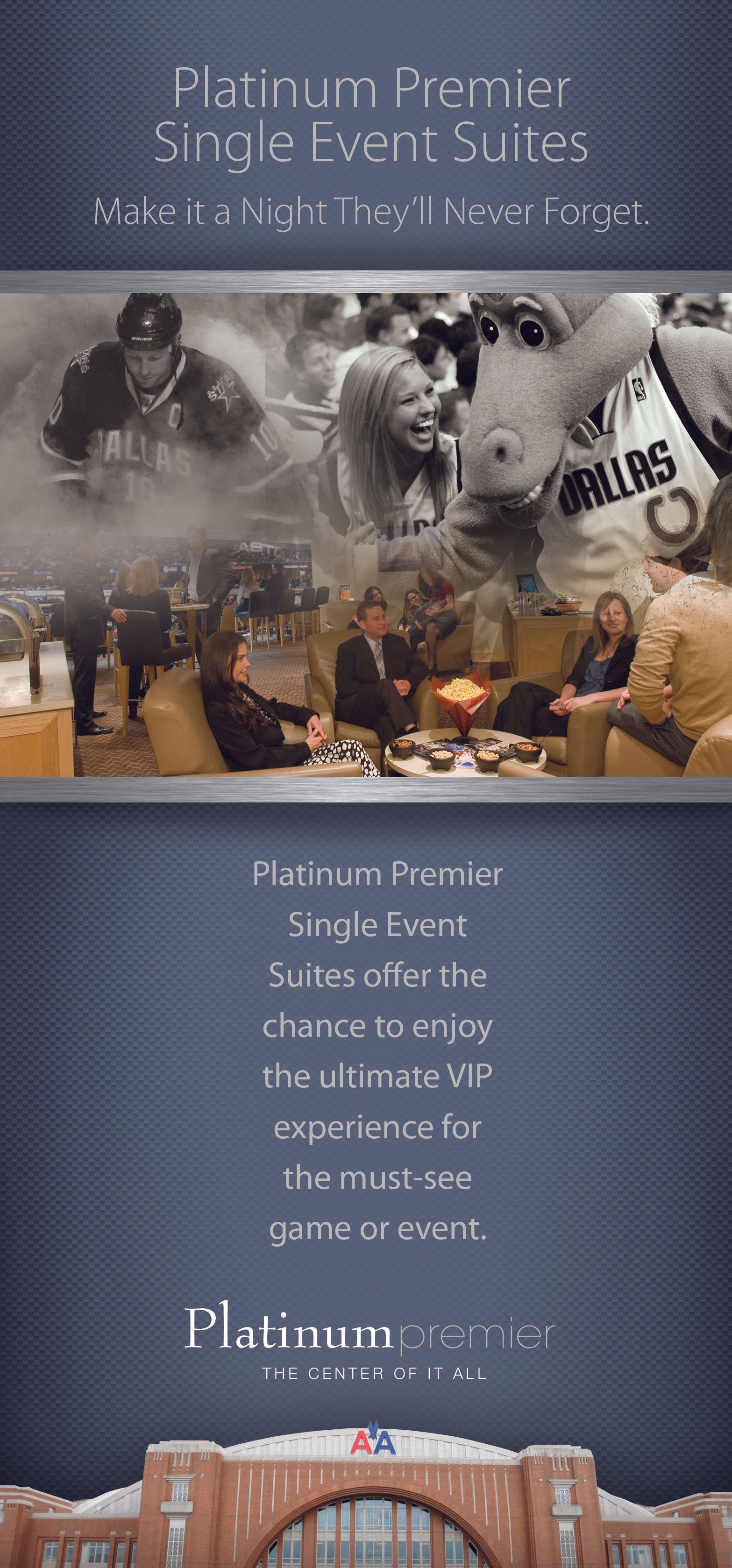 Print ads, brochures, posters and signage were created to help the American Airlines Center retain existing Platinum Premier level ticket and suite holders and promote the benefits and value to new buyers.