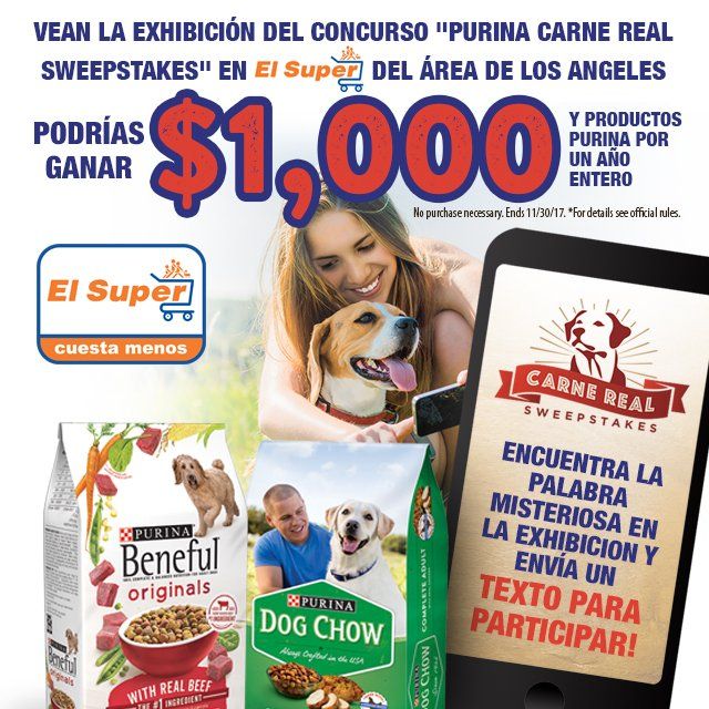 A point of purchase sweepstakes program designed to drive traffic to key Hispanic retailers, increase product awareness and generate incremental sales for Purina Beneful and Dog Chow brands.